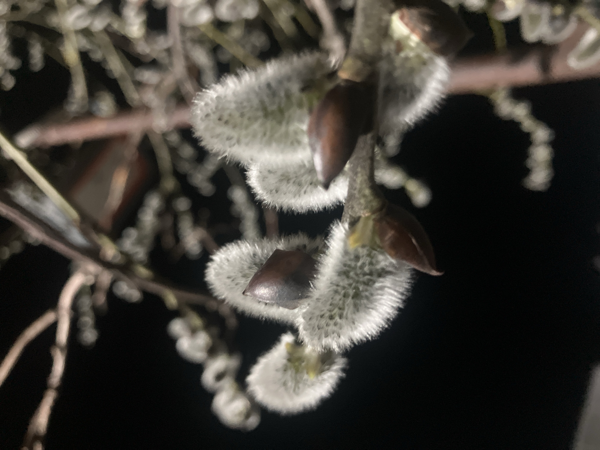 - "A close-up image shows several blossoming pussy willow branches against a dark, blurred background" by FM-RCyYf1, licensed under CC BY 4.0