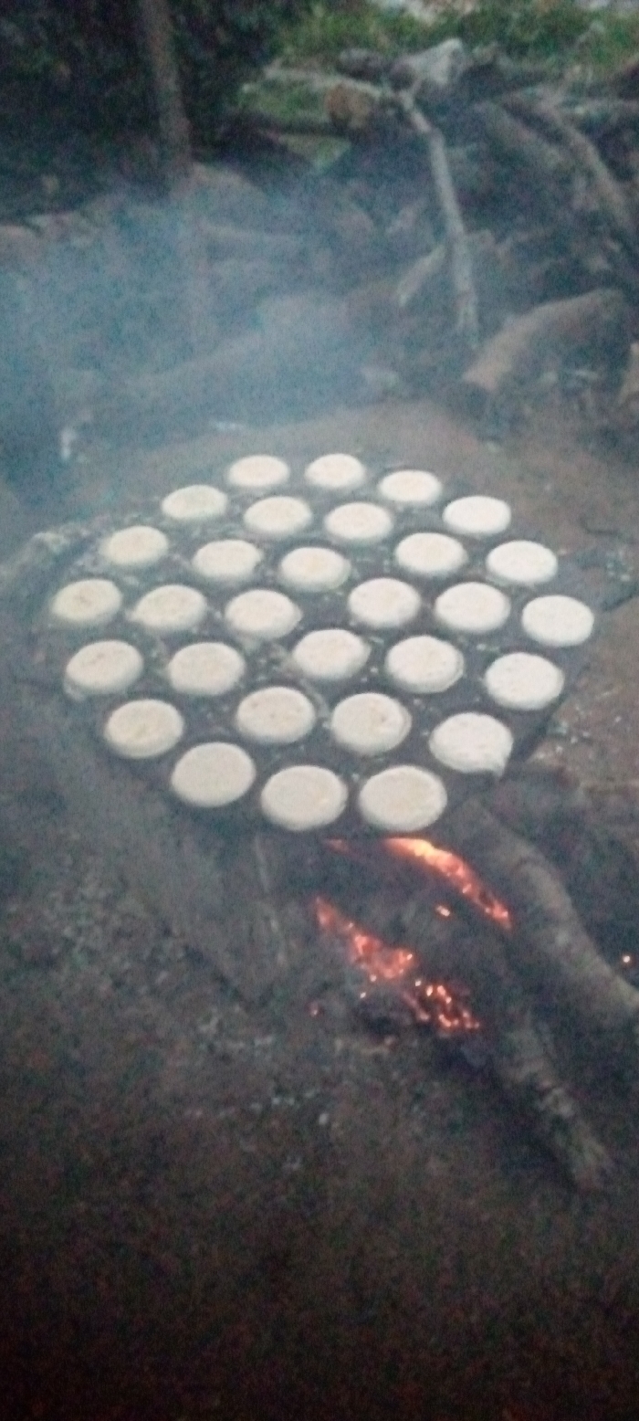- "In an outdoor setting in Adankolo, Nigeria, a rectangular metal griddle holds approximately 35-40 small, circular, light-colored food items, consistent with pancakes or dough" by FM-vzzBG2, licensed under CC BY 4.0