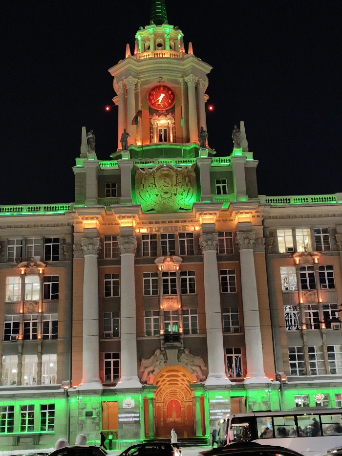 - "The image displays the Yekaterinburg City Hall building at night, located on 1905 Square in Yekaterinburg, Russia" by FM-exHds1, licensed under CC BY 4.0