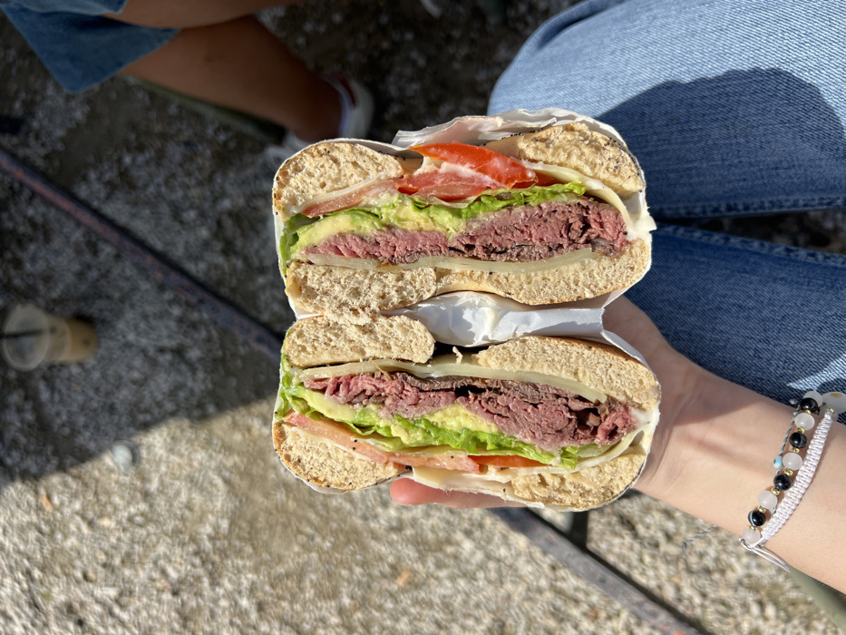 - "A person is holding a sliced bagel sandwich in their hand" by FM-BMB693, licensed under CC BY 4.0
