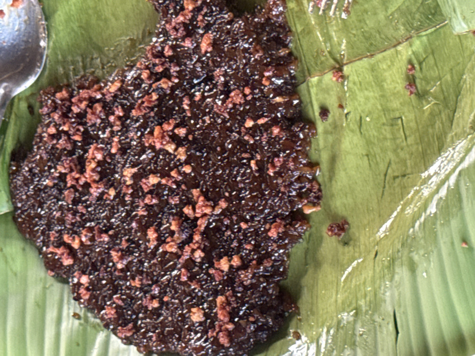 - "The image displays a close-up view of a dark brown, glistening glutinous rice delicacy, characteristic of a Filipino kakanin" by FM-octGQ2, licensed under CC BY 4.0