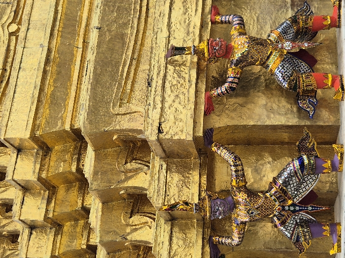 - "The image displays two ornate guardian statues, identified as Yaksha figures, positioned at the base of a multi-tiered golden structure within the Grand Palace complex, specifically Wat Phra Kaeo (Temple of the Emerald Buddha), in Bangkok, Thailand" by FM-2bg8K2, licensed under CC BY 4.0