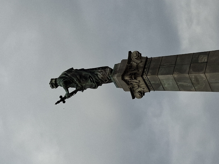 - "The image presents a low-angle, upward view of the bronze statue atop the Liberty Monument in Svoboda Square, Ruse, Bulgaria" by FM-YQydj1, licensed under CC BY 4.0