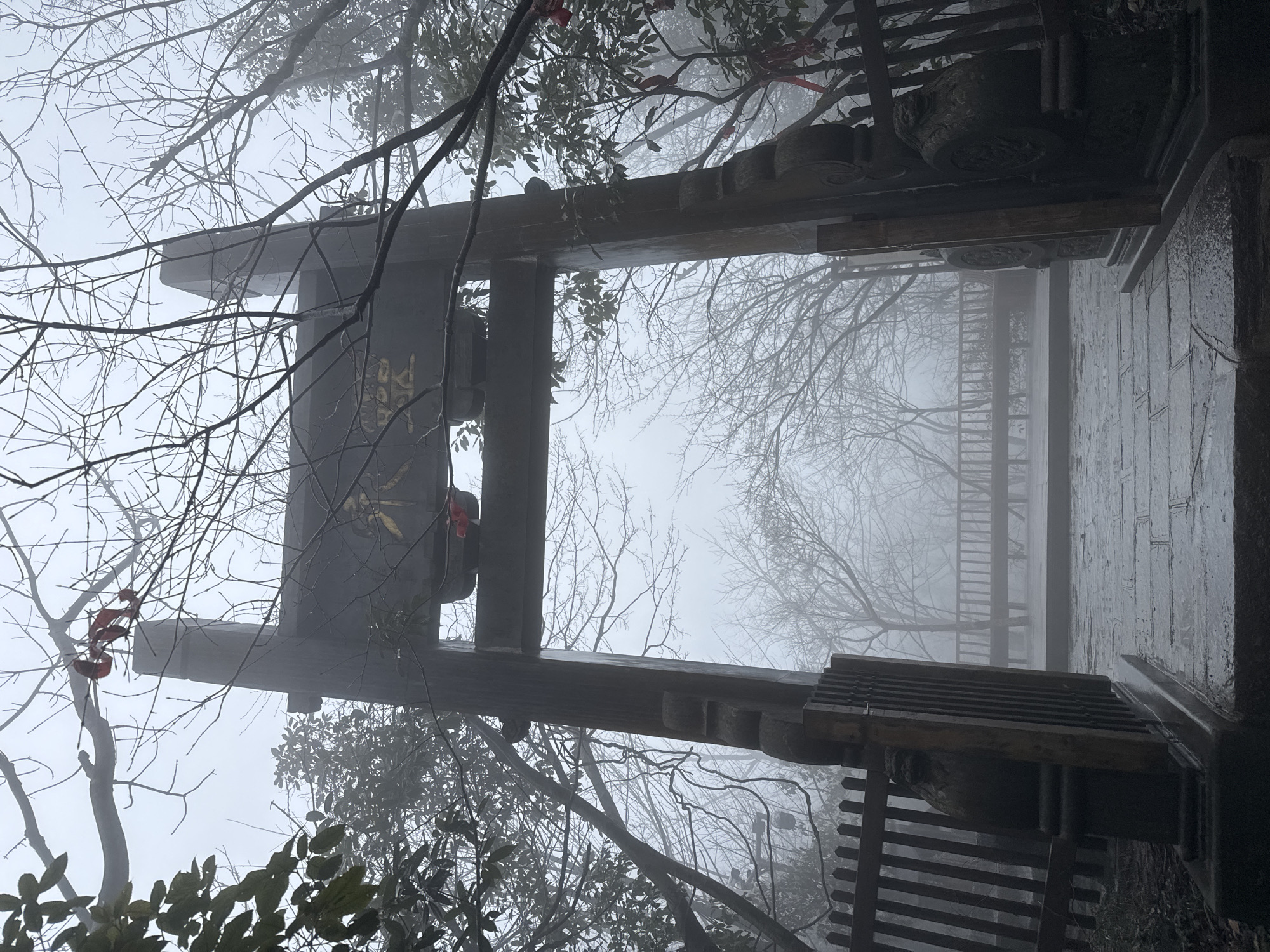 - "The image portrays a traditional Chinese wooden gateway, a paifang, positioned on a wet stone-paved pathway within Yongding District, China, under conditions of dense fog" by FM-7eaFY2, licensed under CC BY 4.0