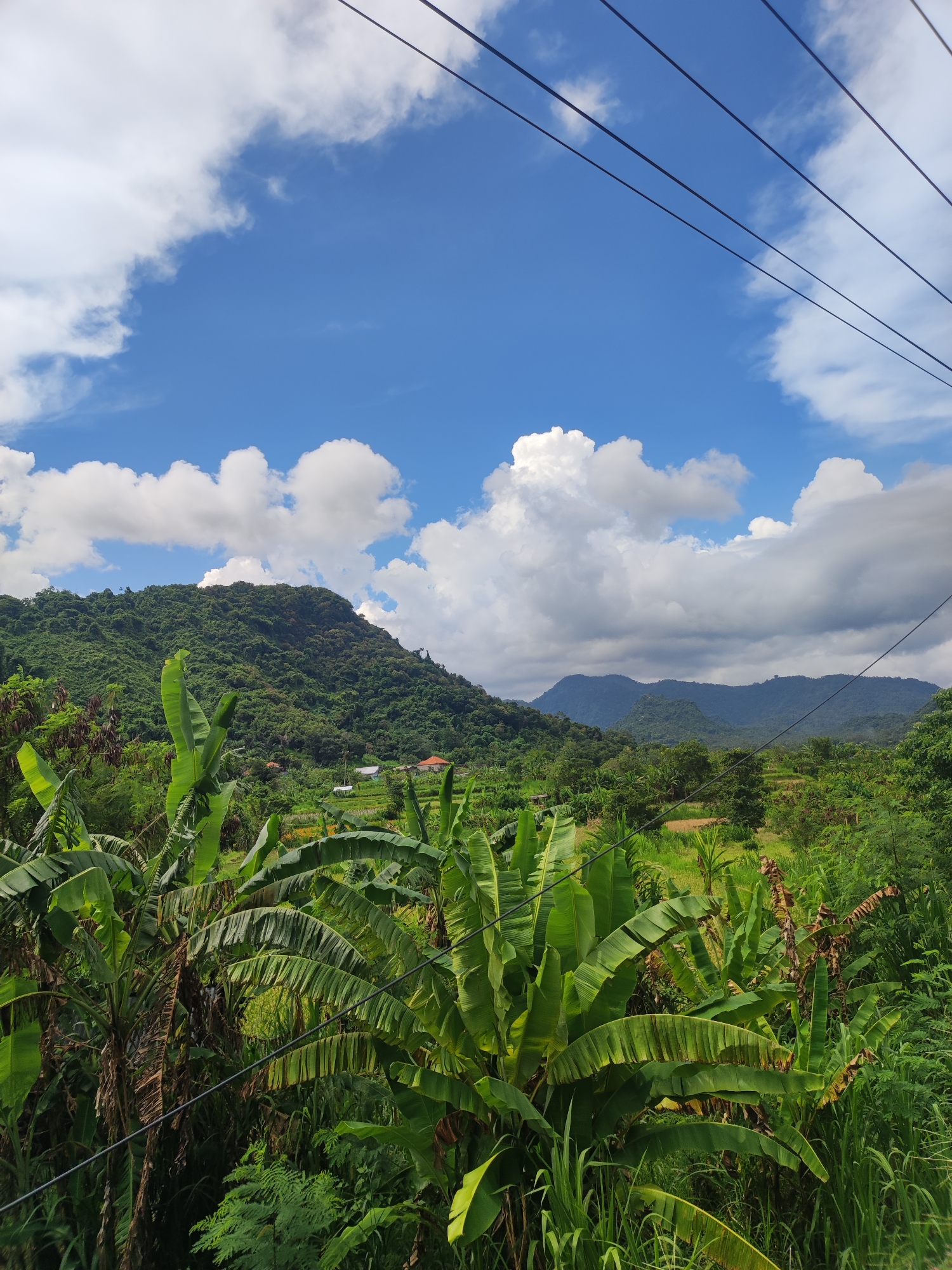 - "The image captures a landscape in Pesinggahan, Indonesia, featuring lush greenery and mountains under a partly cloudy sky" by FM-etA4O2, licensed under CC BY 4.0