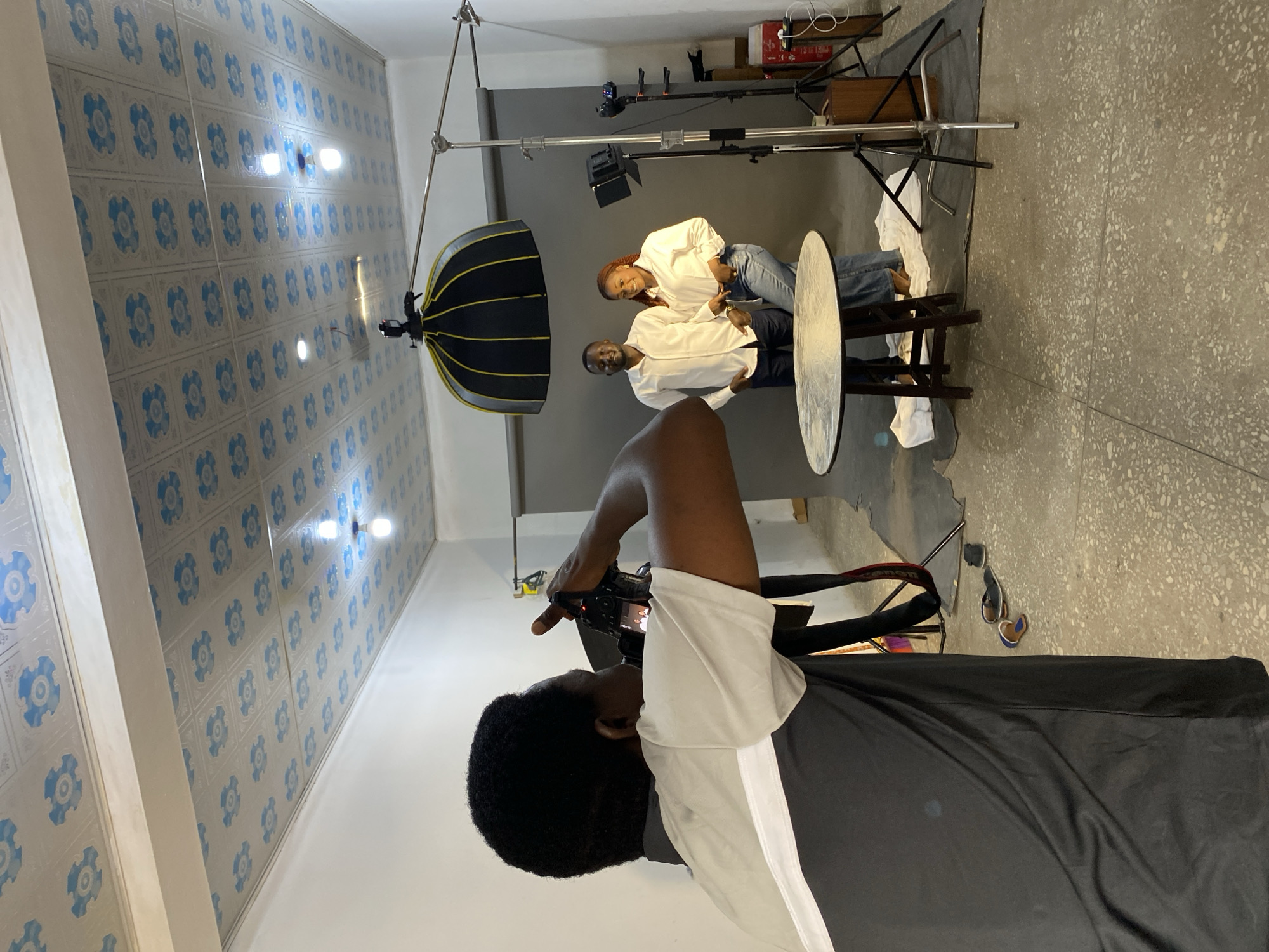 This image depicts an indoor photography session in a studio located in Jos, Nigeria