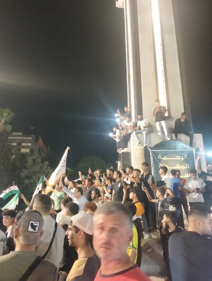 - "This nighttime image captures a large public gathering in Al-Saa'a Square, Homs, Syria, around the illuminated Clock Tower monument" by FM-4RDN43, licensed under CC BY 4.0