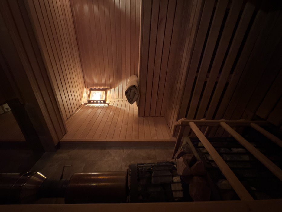 - "A low-angle view within a sauna" by FM-osXZC2, licensed under CC BY 4.0