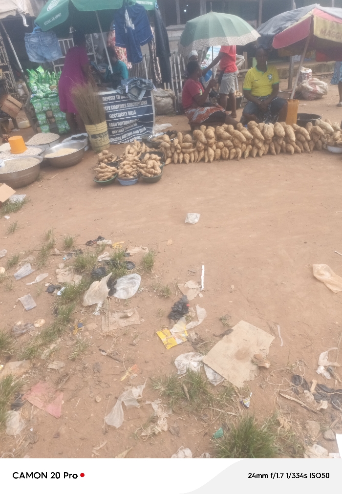 The image depicts an outdoor market scene in Makurdi, Nigeria