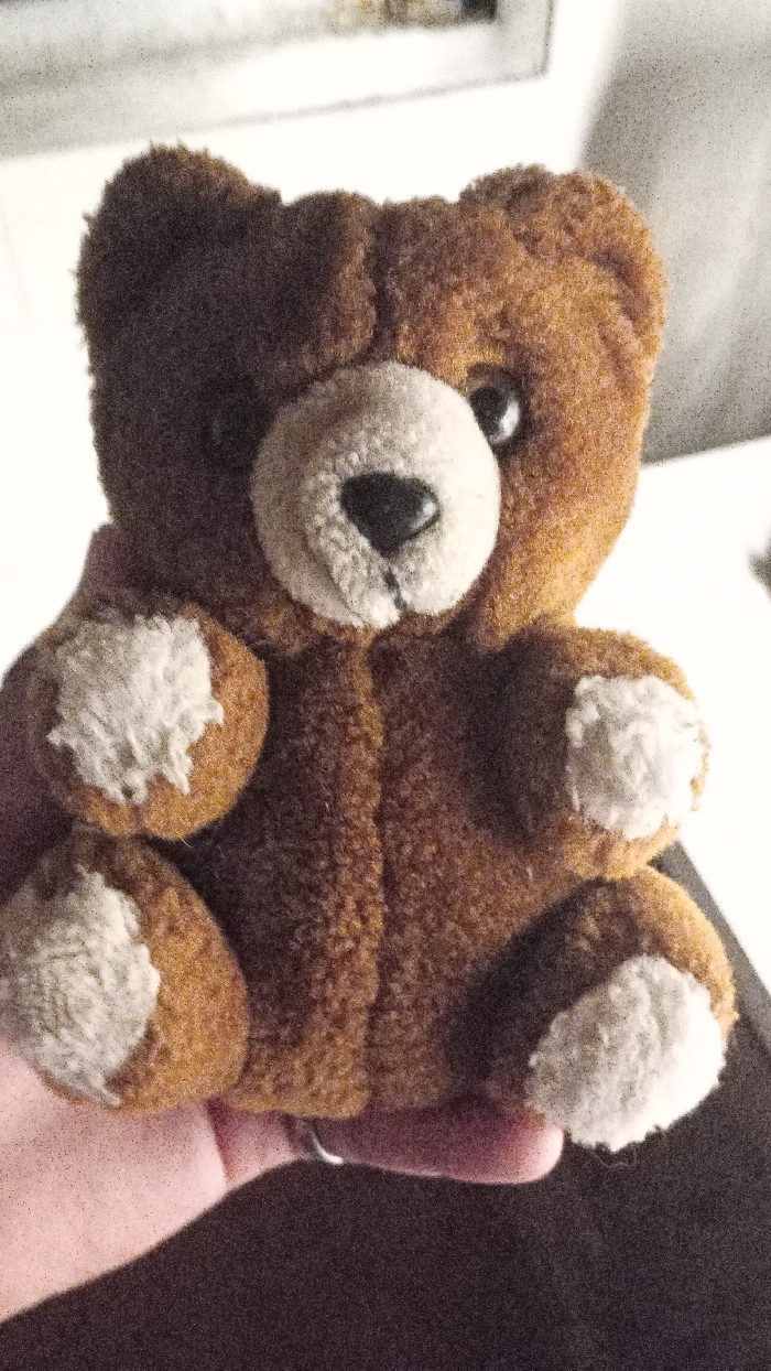 - "A plush brown teddy bear sits perched in someone's hand" by FM-u97T43, licensed under CC BY 4.0