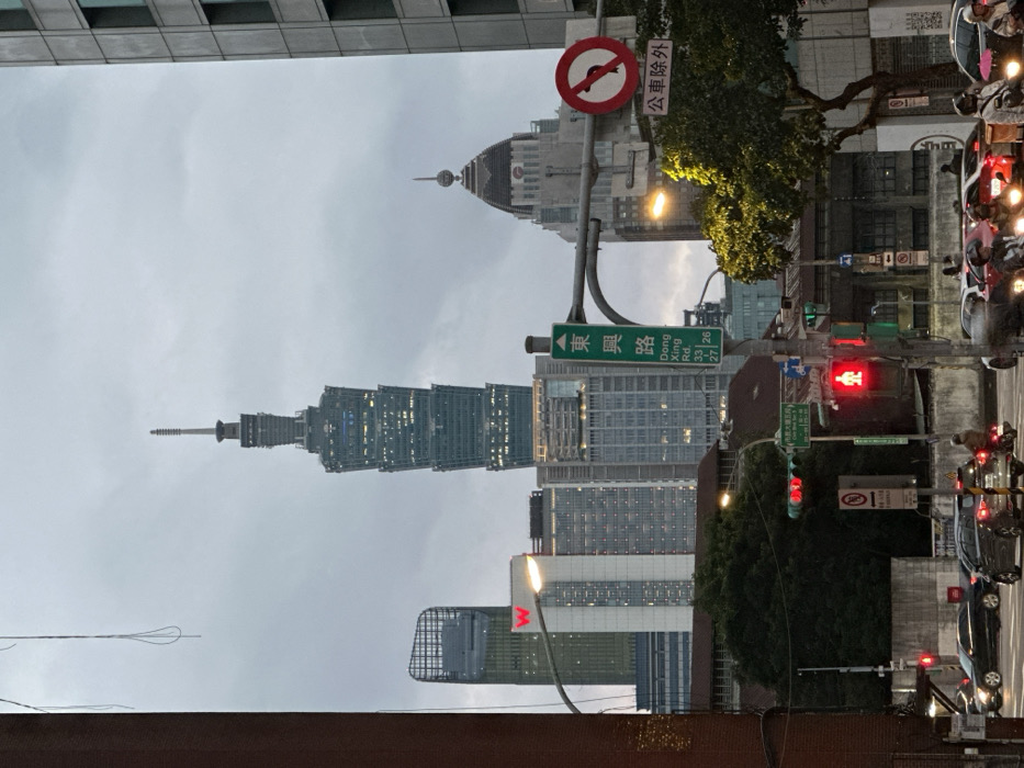 - "This image captures a street-level perspective of an urban intersection in Taipei, Taiwan, looking towards the city's skyline under an overcast sky" by FM-2Bjlr1, licensed under CC BY 4.0
