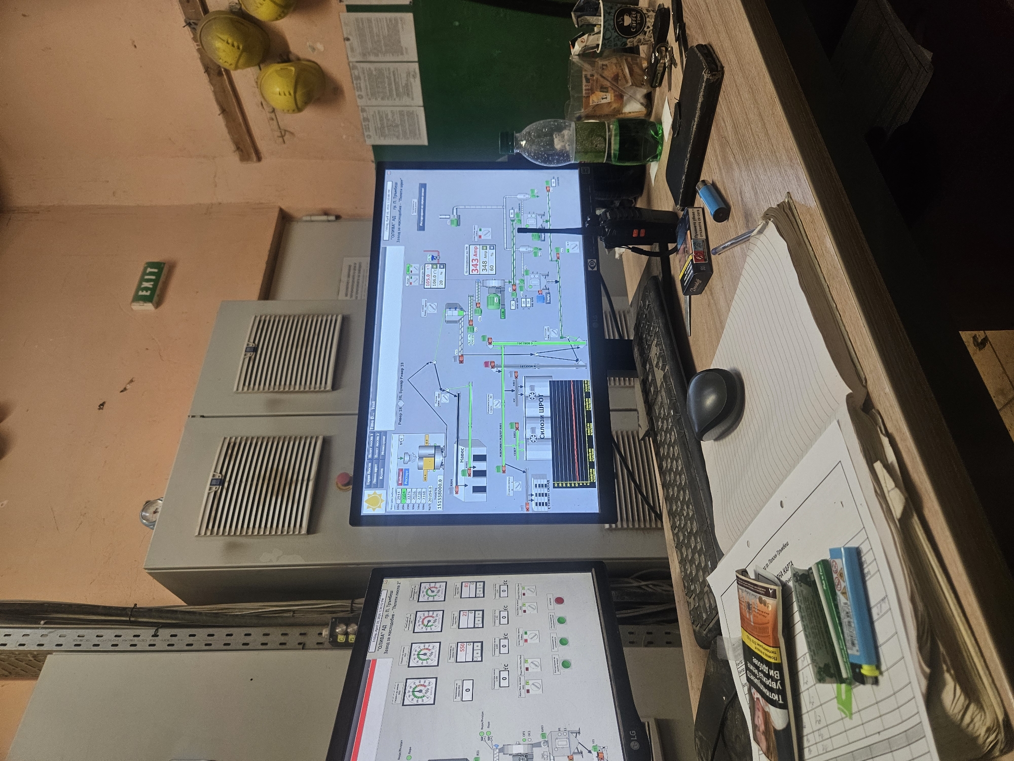 The scene appears to be a control room, possibly within the "Oliva" AD oil extraction plant – "Pellets Husk 2" located in Polski Trambesh, Bulgaria