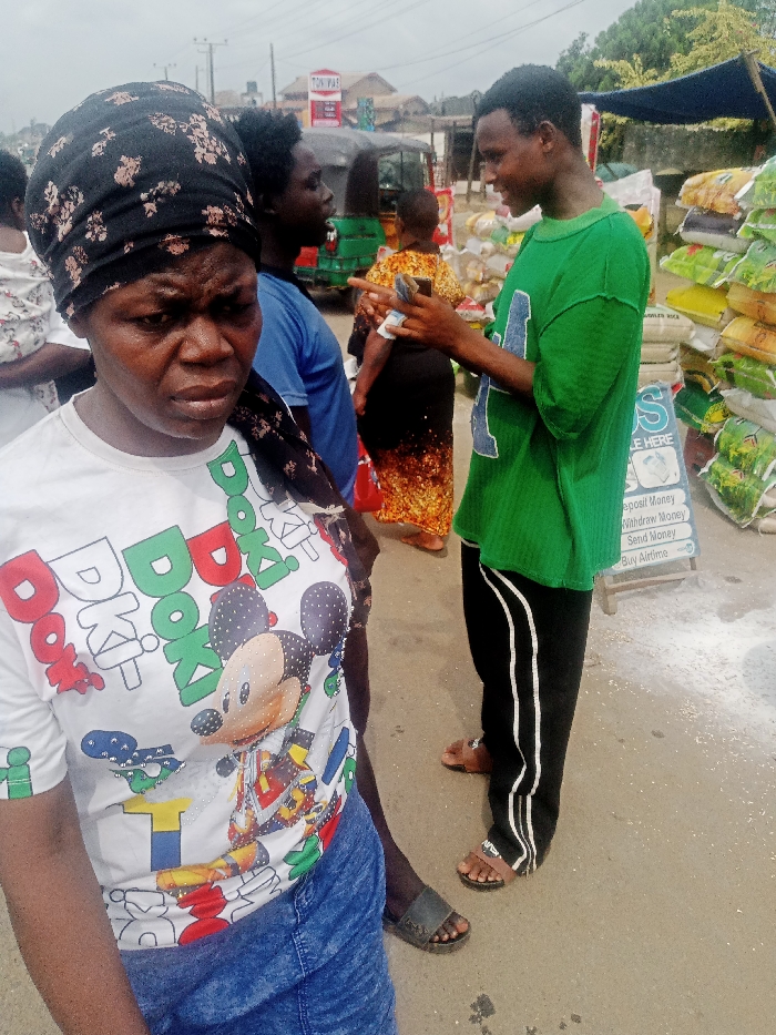 A daytime scene captures an outdoor commercial area in Ura Nta Umuarandu, Nigeria, under an overcast sky