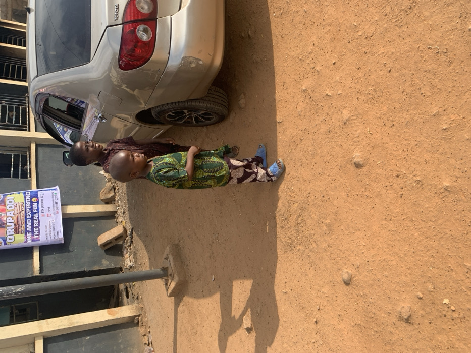 An outdoor scene in Egbedi, Nigeria, depicts two male children standing on reddish-brown dirt ground