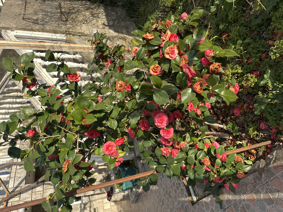 - "The image depicts a thriving camellia shrub located in Seoce, Montenegro, positioned beside a residential structure" by FM-KFMcf2, licensed under CC BY 4.0