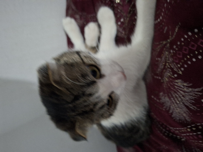 - "An indoor scene depicts a short-haired cat with folded ears, exhibiting tabby and white fur patterns" by FM-OxQk33, licensed under CC BY 4.0