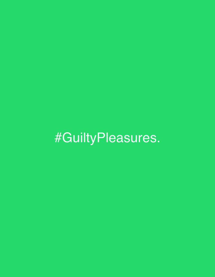 The image is a solid green color with the white text "#GuiltyPleasures