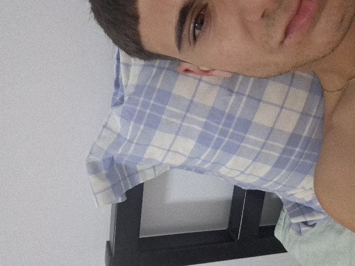 - "The image displays a close-up, upward-angled selfie of a young adult male, positioned in what appears to be an indoor bedroom setting" by FM-VKN742, licensed under CC BY 4.0