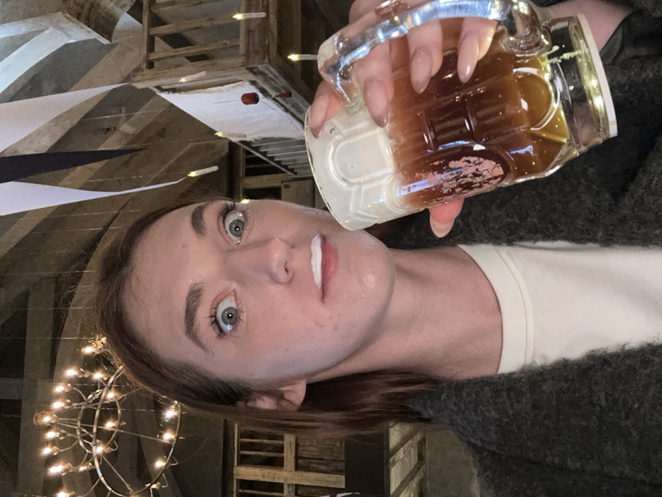 - "A female subject is depicted in a medium close-up, directly facing the camera with wide-open blue eyes and a line of white foam on her upper lip" by FM-9iDyv1, licensed under CC BY 4.0