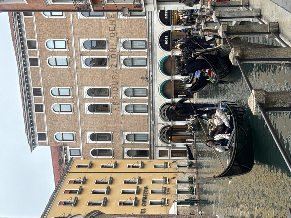 - "An overhead, slightly angled photograph captures a bustling canal scene in Venice, Italy, specifically the Bacino Orseolo, with the "Assicurazioni Generali" building and "Hotel Cavalletto" visible" by FM-yjK1X2, licensed under CC BY 4.0