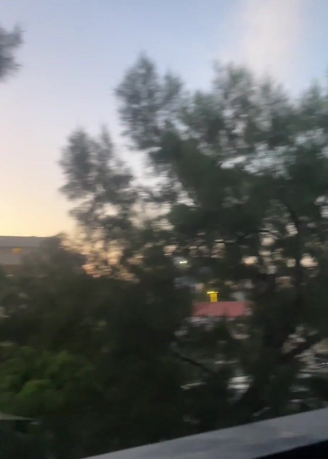 The video begins with an out-of-focus view of trees against a sky with colors suggesting either sunrise or sunset