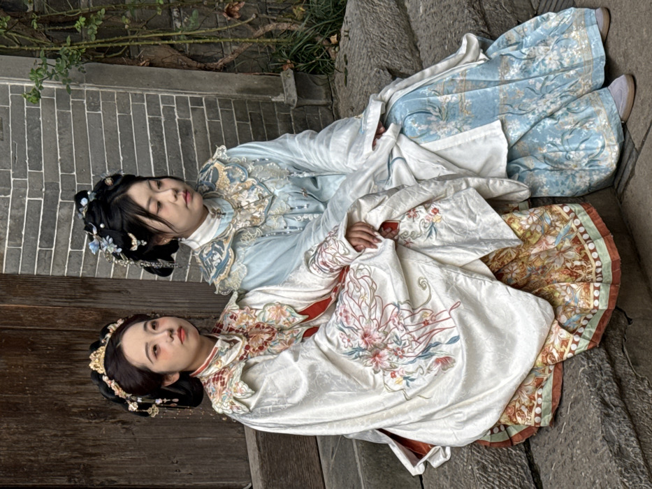 - "Two young adult females are seated side-by-side on grey stone steps in an outdoor setting within Qinhuai District, China" by FM-K0Kp62, licensed under CC BY 4.0