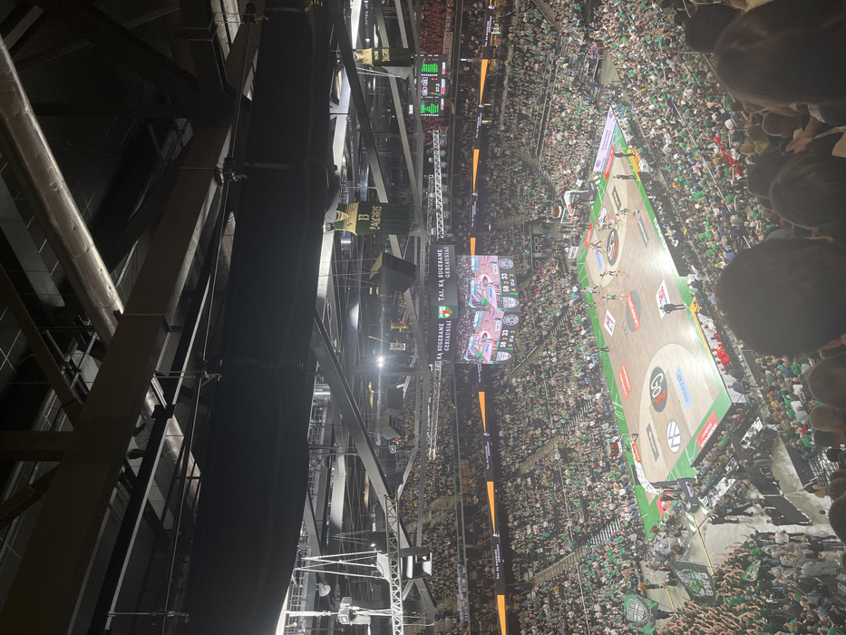 - "The image depicts an active indoor basketball game from a high-angle perspective within the Žalgirio Arena, located in Kaunas, Lithuania" by FM-dwjCF3, licensed under CC BY 4.0