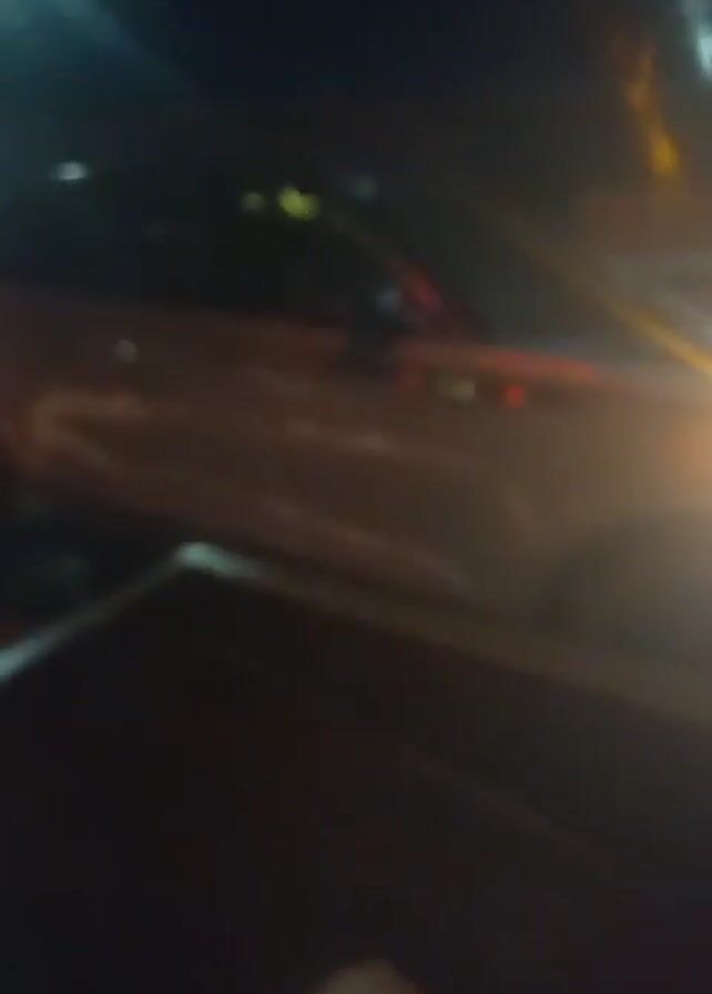 At night, a black Range Rover is parked on a street under the lights of several streetlights. The vehicle’s headlights are on, shining brightly. A vehicle with tinted windows is parked nearby, as well as a tall structure with some red lights on the inside. Sounds of sirens can be heard in the background.