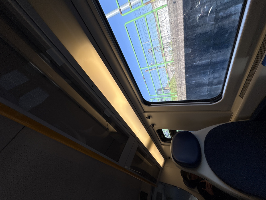- "The image presents an interior view from a train compartment, situated within the city of Milan, Italy" by FM-xmS903, licensed under CC BY 4.0