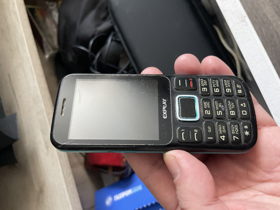- "A human hand, with fair skin and visible knuckles, holds an Explay-branded black feature phone in an upright position" by FM-YbcwF3, licensed under CC BY 4.0