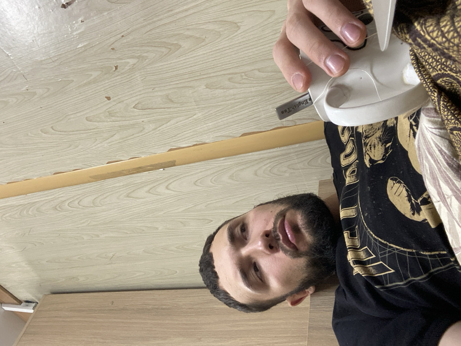 - "A man lies on a light-colored wooden floor, holding a white mug with a metal tag labeled "English Tea" by FM-2nUQI2, licensed under CC BY 4.0
