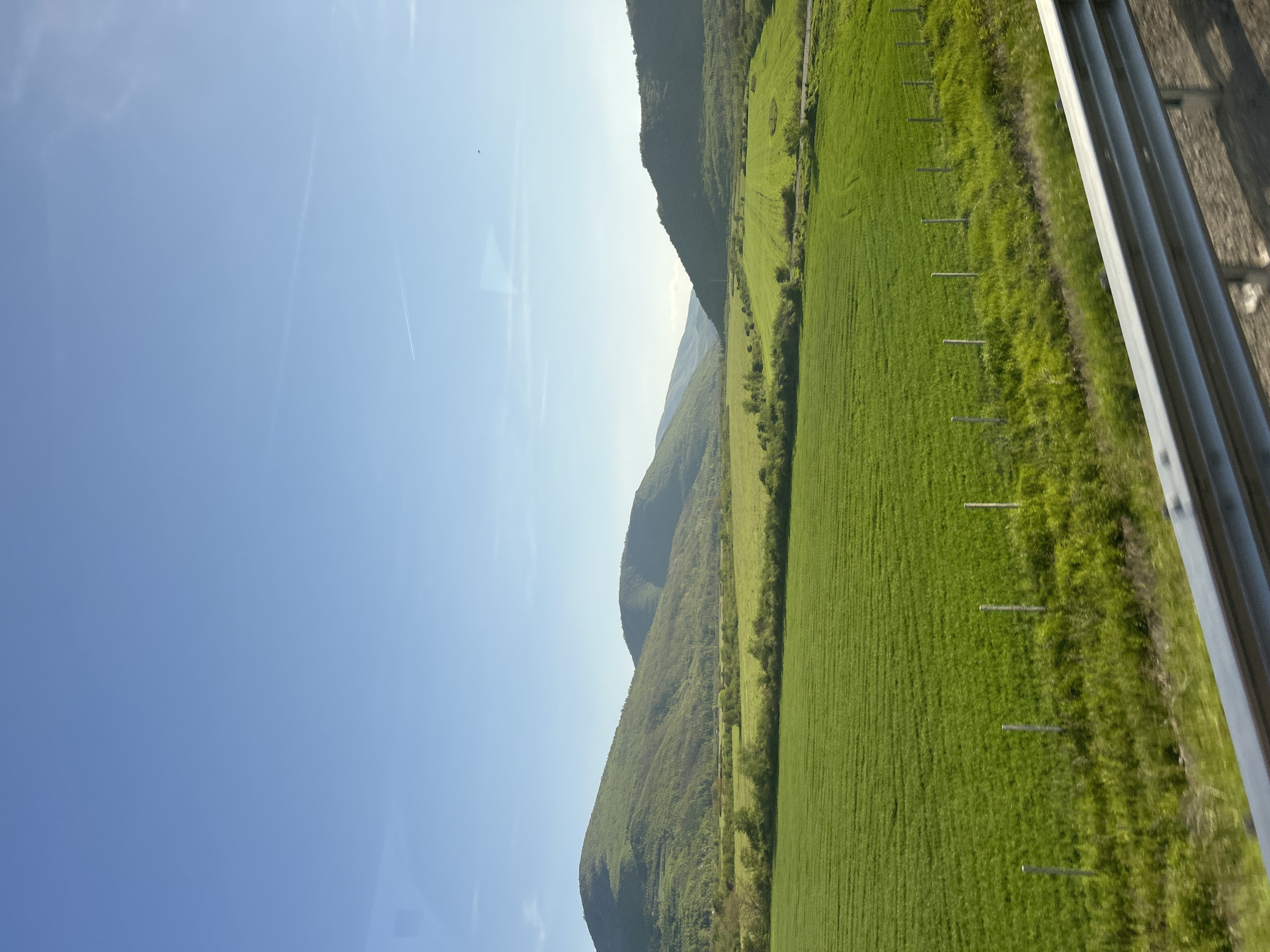 - "The image depicts a landscape of green fields and forested hills under a blue sky" by FM-q38rg2, licensed under CC BY 4.0