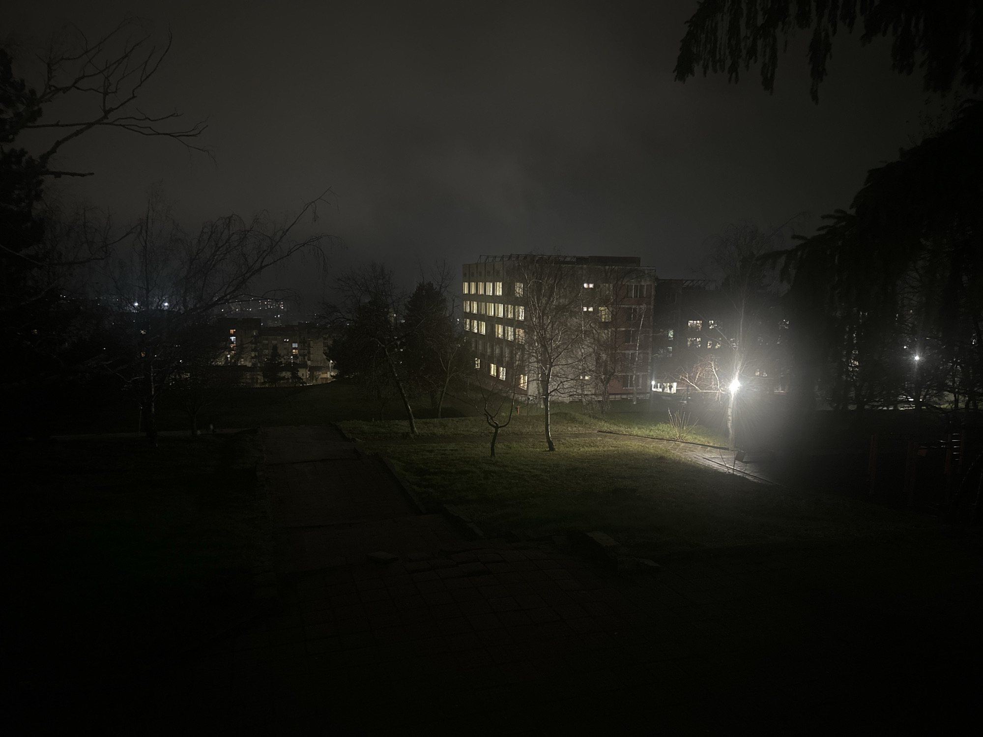 - "The image captures a nighttime urban scene in Veliko Tarnovo, Bulgaria, characterized by dim lighting and a pervasive atmospheric haze or fog" by FM-VA3fJ2, licensed under CC BY 4.0