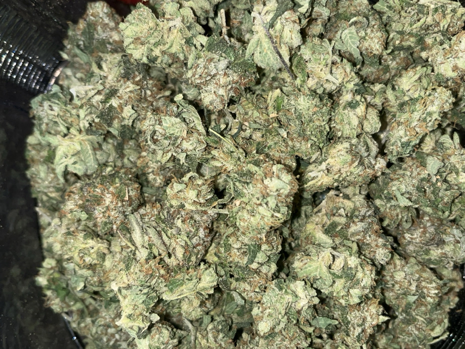 - "A dense collection of cannabis buds, displaying a mix of light and dark green hues, punctuated by brownish pistils" by FM-dFHXv1, licensed under CC BY 4.0