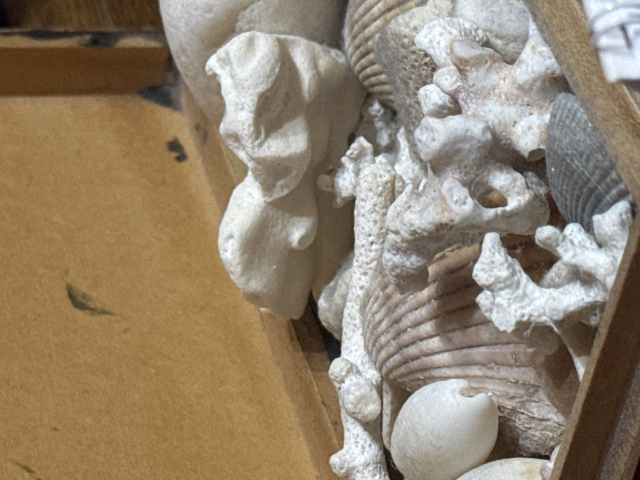 - "This image, set in Lovech, Bulgaria, captures a close-up view of a collection of dried marine elements contained within an open, light brown wooden box" by FM-APJxy1, licensed under CC BY 4.0