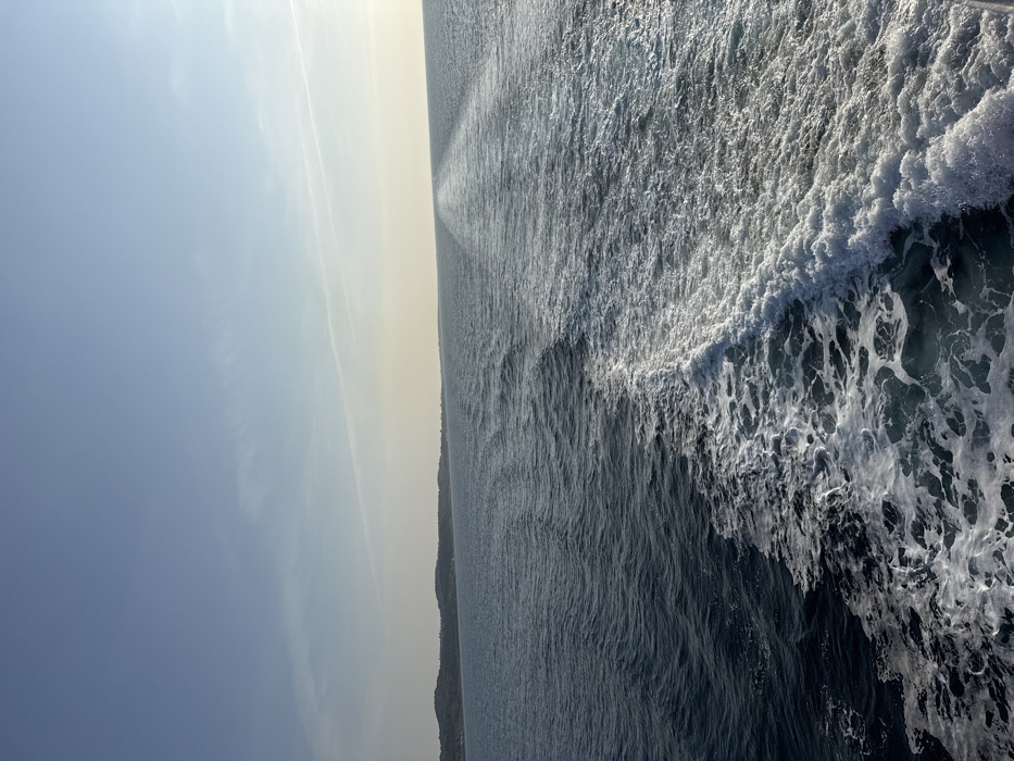 - "The image displays an open-water scene near Kamariotissa, Greece, viewed from the stern of a moving vessel" by FM-GvERo2, licensed under CC BY 4.0