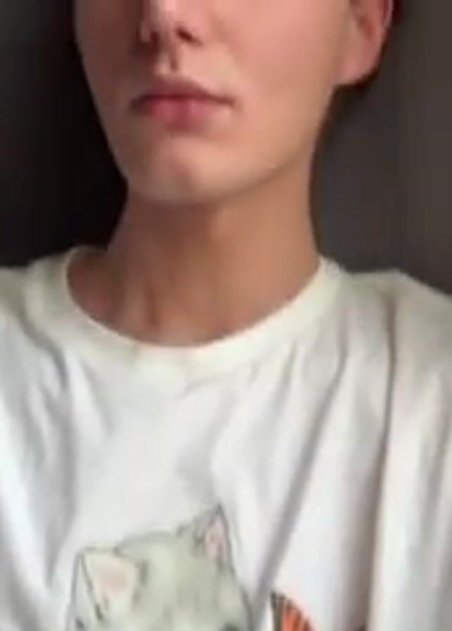 young man wearing a white t-shirt. The t-shirt has a picture of a kitten and a butterfly on it, with the words "nobody cares" written below. The man has brown curly hair and light-colored eyes. He is standing in front of a curtain or wall. He is looking at the camera with a neutral expression.