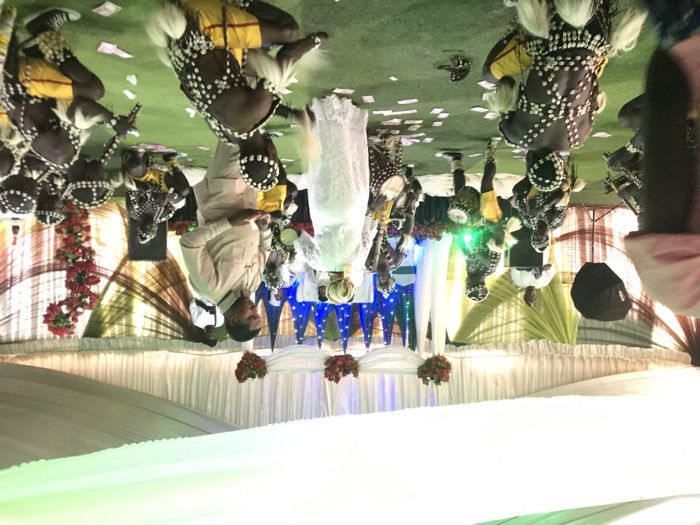 Within an enclosed event space, likely a large tent or hall, in Nabatum, Nigeria, a cultural performance is underway