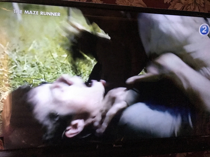 - "A photograph captures a television screen, located in Ankpa, Nigeria, displaying a scene from "THE MAZE RUNNER," text visible in the upper left" by FM-sbehJ2, licensed under CC BY 4.0