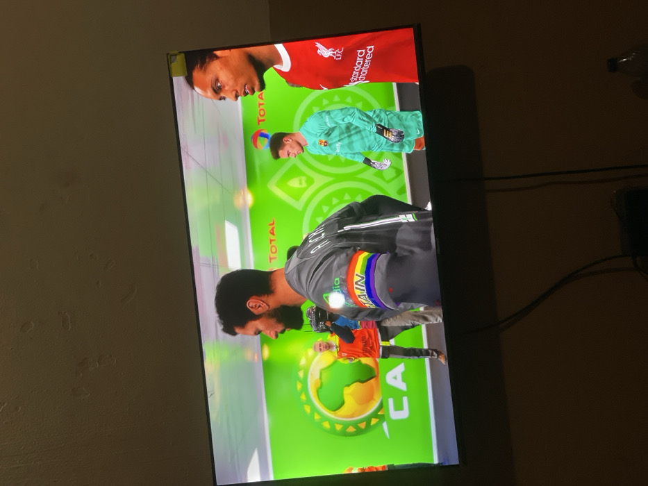 - "A flat-screen television displays a football simulation or video game, mounted on a light-colored wall with minor surface imperfections, within a residential or common area in Unguwar Gabas, Nigeria" by FM-BxNEa2, licensed under CC BY 4.0