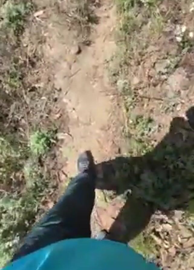- "A first-person POV shows someone walking along a narrow dirt trail" by FM-XvSzv1, licensed under CC BY 4.0