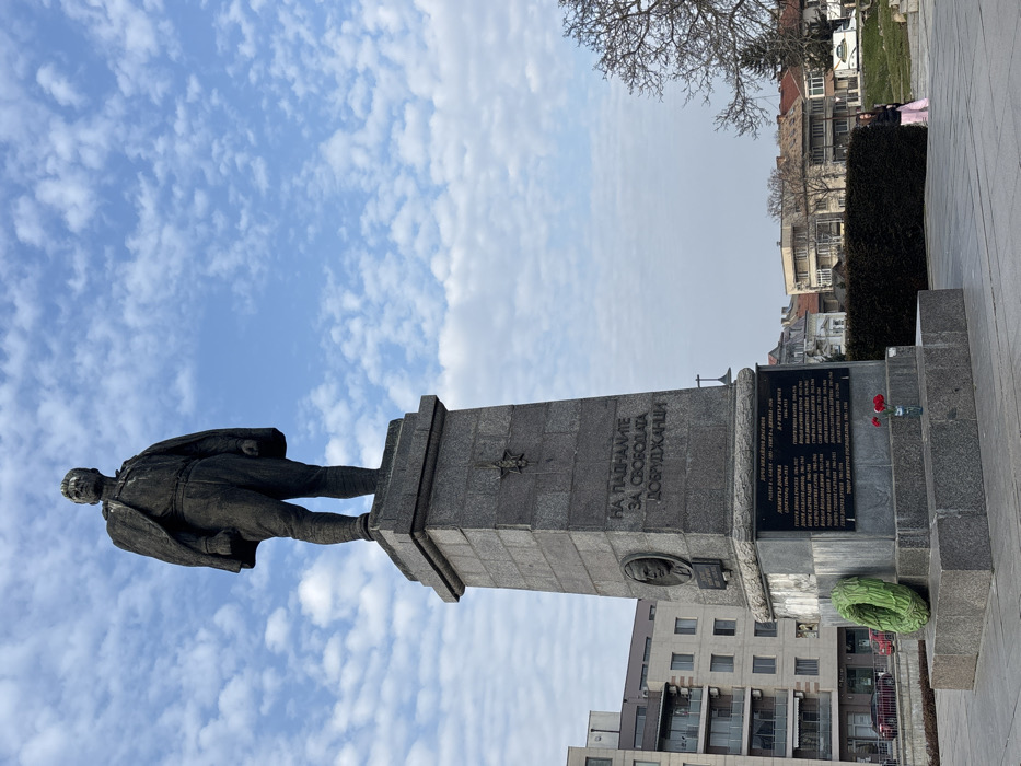 - "A large bronze-colored statue of a man stands prominently on a tall, multi-tiered grey stone pedestal in a public square in Silistra, Bulgaria" by FM-vNO8t2, licensed under CC BY 4.0