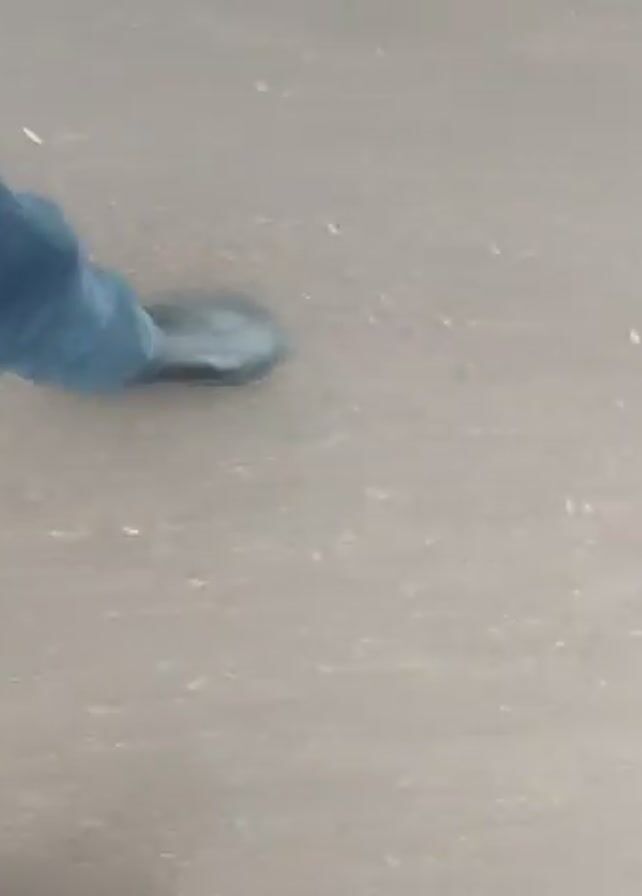first-person perspective of someone walking on a gray surface
