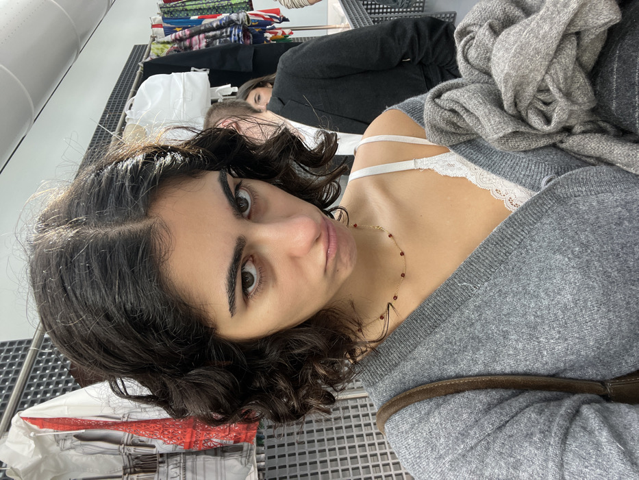 - "A young woman with dark, curly, shoulder-length hair and prominent eyebrows is centered, looking directly at the camera with a pouting expression, her lips downturned" by FM-Gy0vP2, licensed under CC BY 4.0