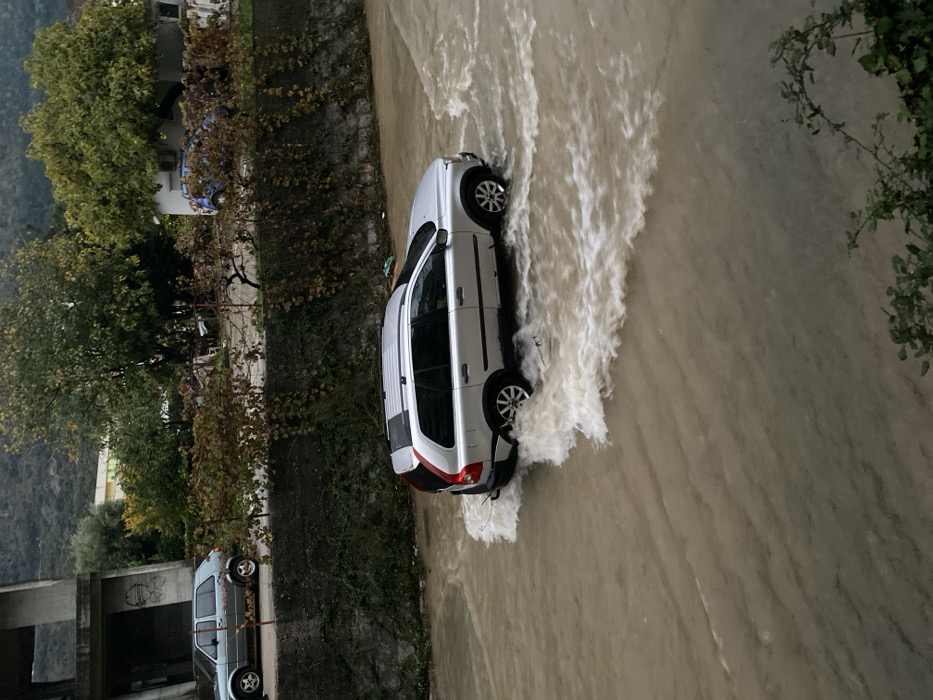 - "A silver Volvo XC90 SUV is depicted traversing a body of fast-moving, turbid water, indicative of a swollen river or heavily flooded street, within the city of Budva, Montenegro" by FM-WFDIY2, licensed under CC BY 4.0