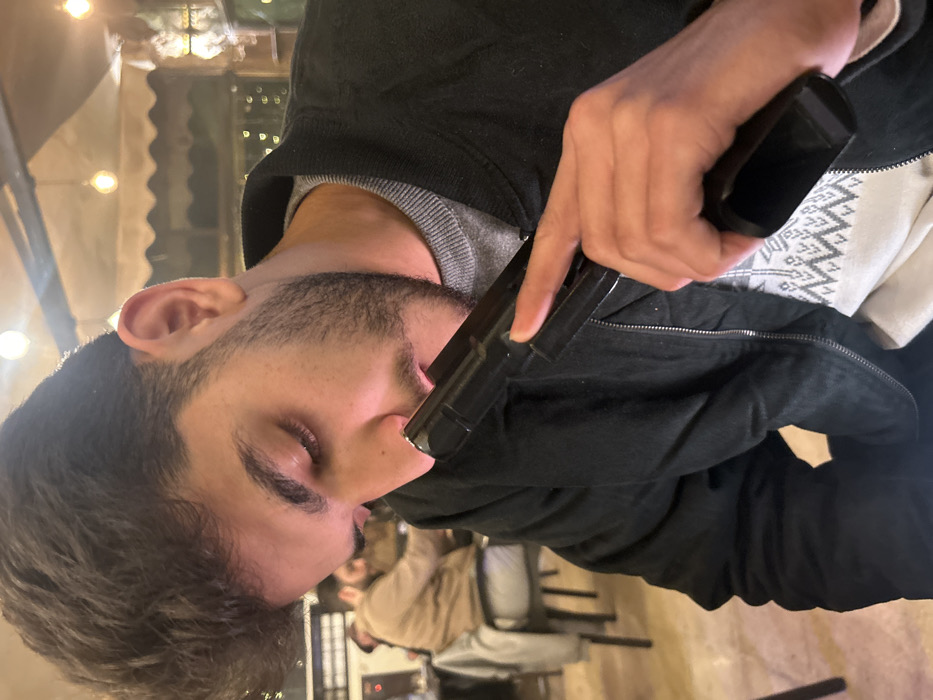 - "A bearded man holds a black handgun to his mouth, the barrel touching his lips" by FM-EsaHu1, licensed under CC BY 4.0