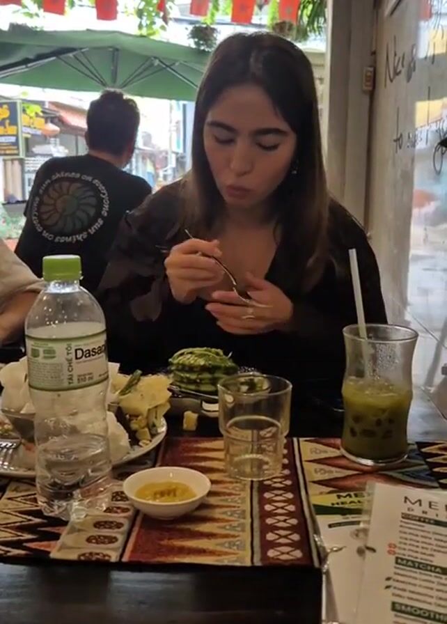 - "The video depicts a woman in a casual black top eating at a restaurant" by FM-vOprn2, licensed under CC BY 4.0