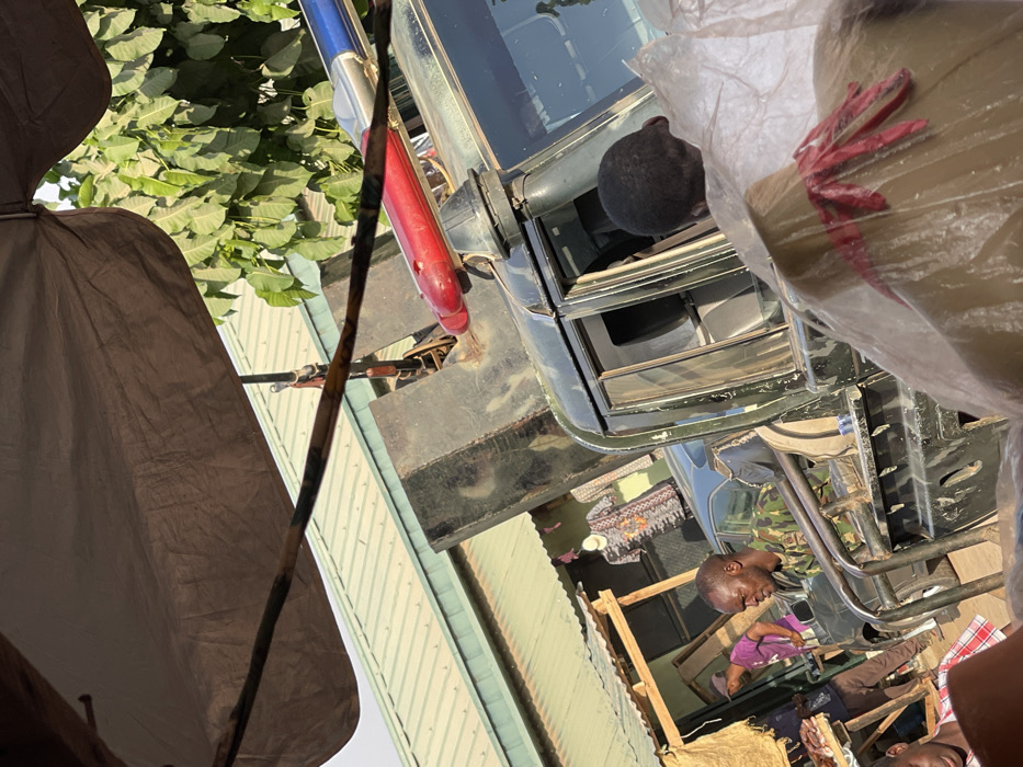 The image depicts an outdoor scene in Samaru, Nigeria, under bright daylight