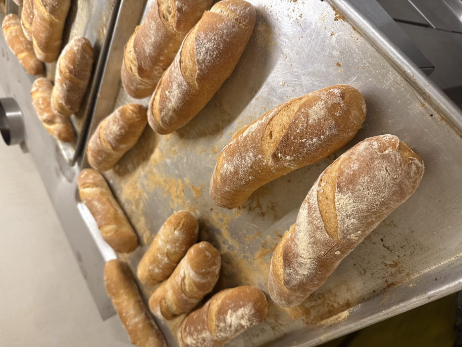 - "An overhead shot shows numerous small loaves of crusty bread arranged haphazardly on a well-worn metal baking sheet" by FM-WqKVS2, licensed under CC BY 4.0