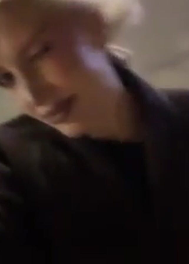 The video begins with a close-up shot of a fair-skinned woman with blonde hair pulled back, wearing dark lipstick and a dark-colored jacket or sweater